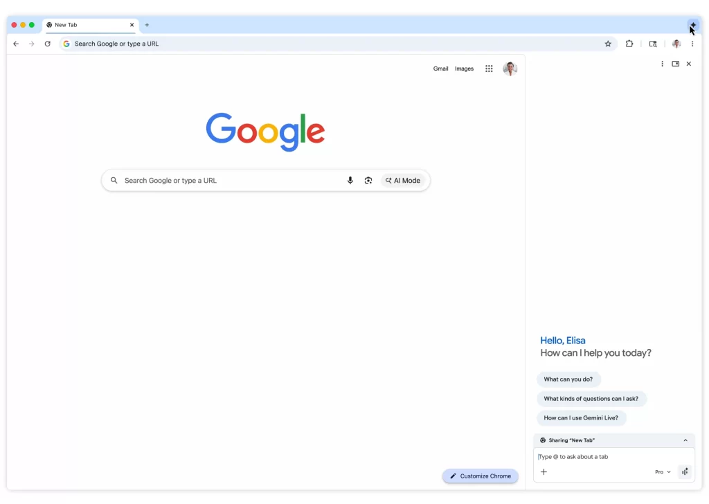 La compañía acaba de anunciar una integración mejorada de Gemini 3 en Chrome (Windows, macOS, Chromebook Plus), con una barra lateral persistente, retoques de imágenes «Nano Banana» directamente en la pestaña, y sobre todo, un modo agente llamado Auto Browse (reservado para suscriptores AI Pro/Ultra en los Estados Unidos).